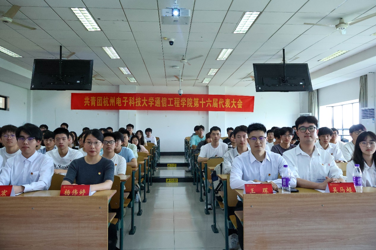 青春气贯长虹,青年搏击长空,经过各方精心的筹备,共青团杭州电子科技大学通信工程学院第十六次代表大会于2025年5月14日在12教512隆重举行。校团委副书记杨伟婷,通信工程学院党委委员、学工办主任王琛,通信工程学院团委书记吴马超以及来自各年级的116名团员代表、团委骨干齐聚一堂,共商团委发展大计。
