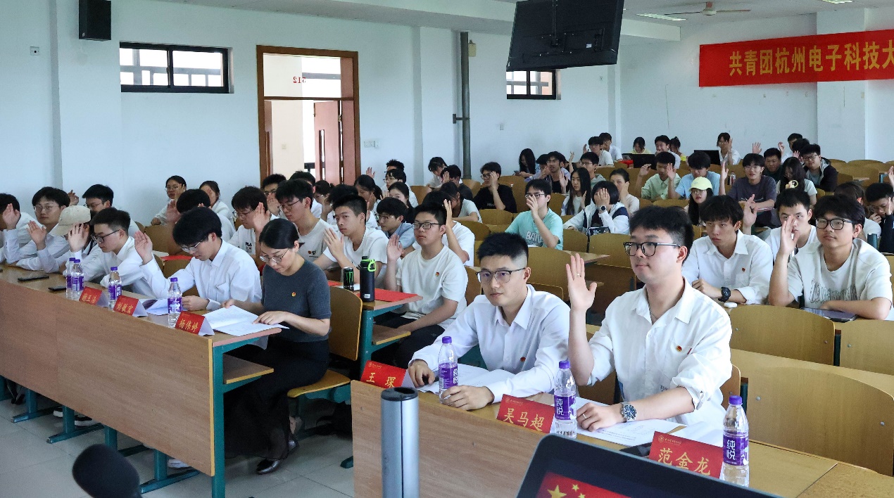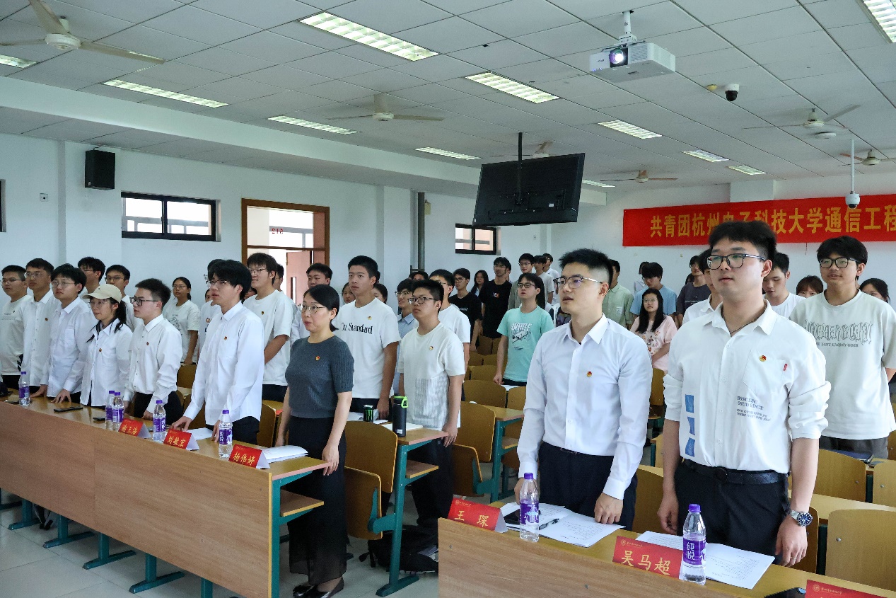 最后,全体代表奏唱团歌,在激昂的旋律中,共青团杭州电子科技大学通信工程学院第十六次代表大会圆满落幕。此次团代会的胜利召开,是学院团学工作承前启后、继往开来的重要里程碑。新一届团委将在学院党委和校团委的领导下,团结带领广大团员青年,以更饱满的热情、更坚定的信念,为学院发展和国家建设贡献青春力量!