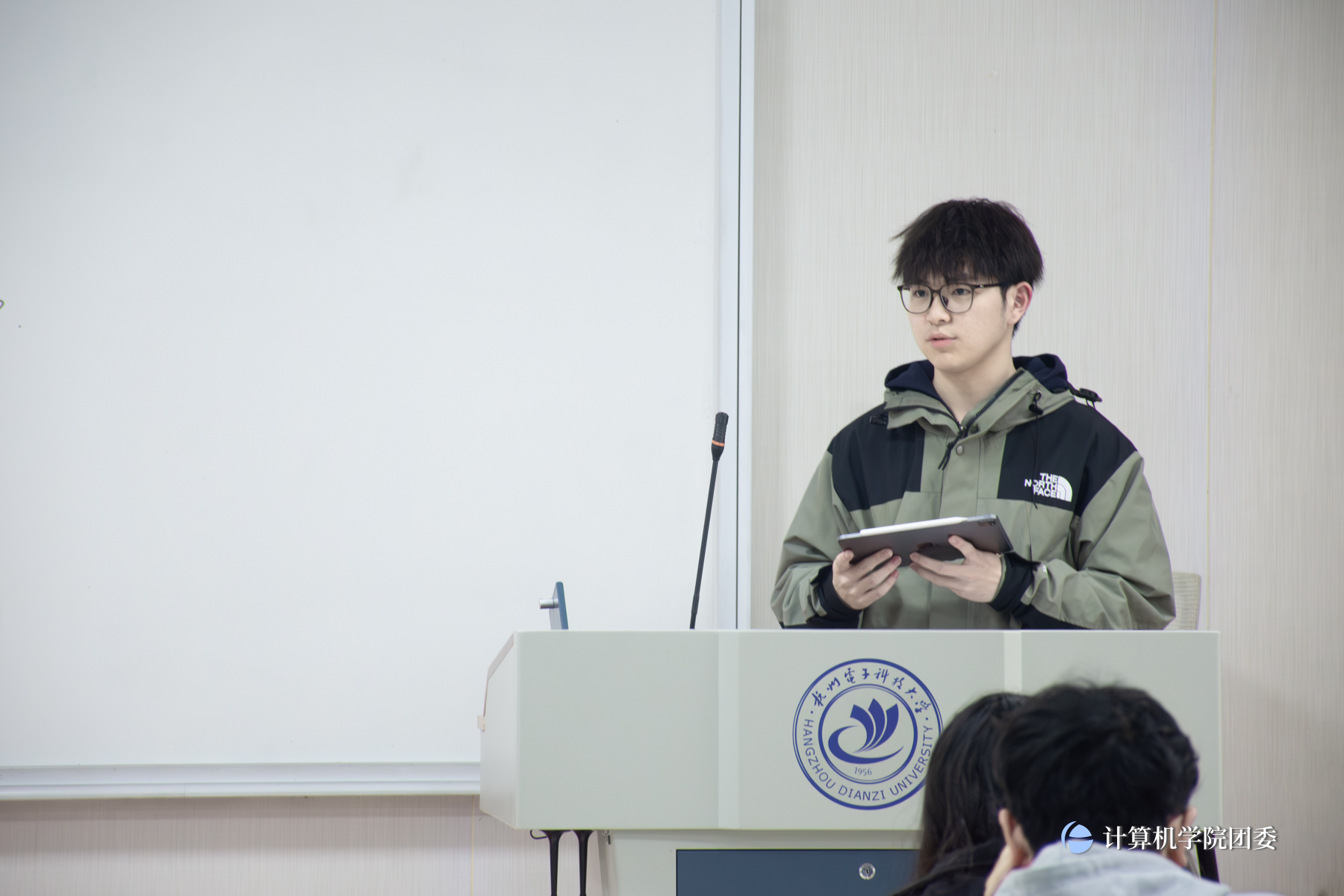 随后,团支书代表陈尹嘉上台分享了上学期的工作总结与反思。他大致回顾了班级团支部在组织活动、思想引领以及团员发展等方面的工作情况,总结了工作中的经验与教训,并表示在今后的工作中,要更加注重思想引领,积极探索创新工作方法,不断提升团支部的凝聚力和战斗力。