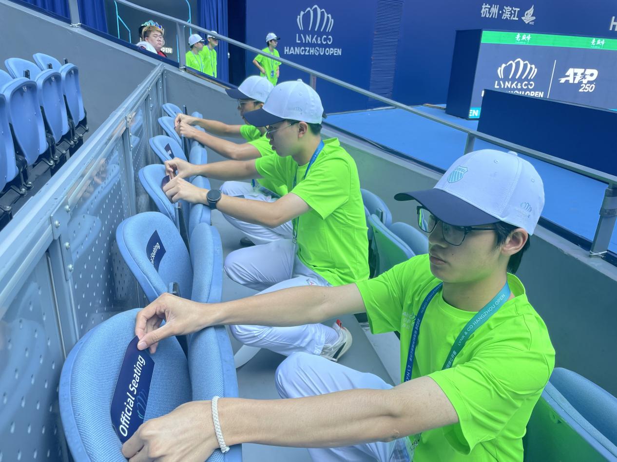 今年的“小莲花”也在这场网球盛宴中重逢了它的许多旧朋友。“初次参加ATP志愿,是在去年的这个夏天。在观众服务的岗位上,我见证了球员的成功晋级,感受了现场观众的热情欢呼。记忆中存留着很多美好的身影,是跟我们一起上岗,一起吃饭,一起聊天的老师;是在各自岗位上默默付出的200位杭电‘小青荷’!这个夏天,又至‘小莲花’,我也将会遇见更多美妙的事,更多可爱的人,和更进一步的自己。”负责球童管理的林心语在今年回归ATP在岗位上动情说到。