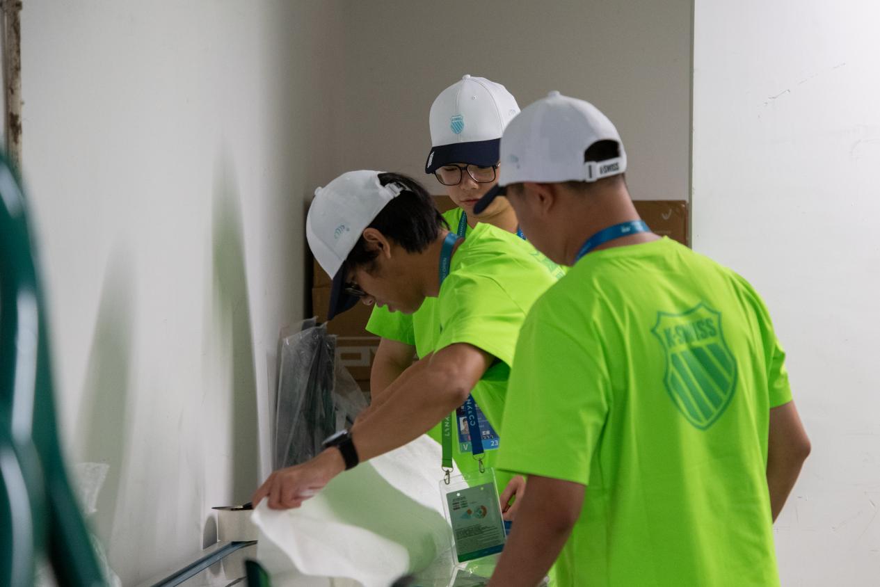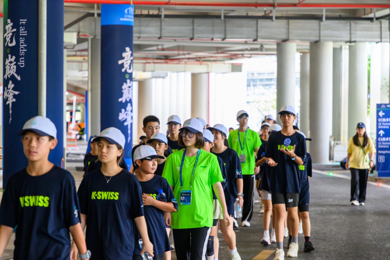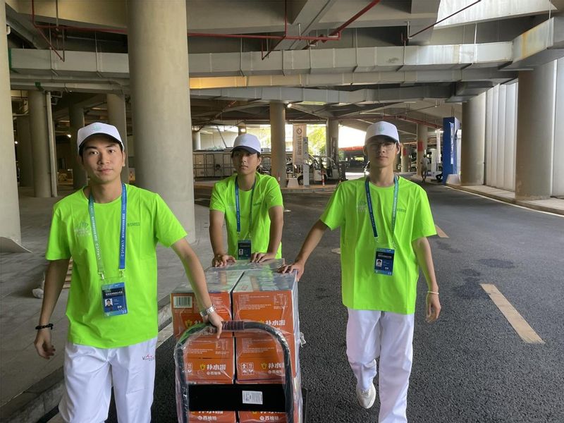 开赛第一天早上,“小青荷”们已整装待发。烈日下的网球赛场上,场地服务领域的志愿者们全力以赴,挥汗如雨。他们在演练中准备比赛物资,随时补充,帮助球员在局间有效恢复体力。紧张赛程中,来自卓越学院的李卓曦和运动员们同样心如擂鼓,他在赛后流着汗分享:“从搬运物资到布置场地,每一个环节都充满了新鲜的挑战;汗水背后,是团队协作的温暖和赛事顺利启幕的成就感,正是这些看似微不足道的瞬间,让我真切体会到志愿服务中最真挚的感动与力量。”