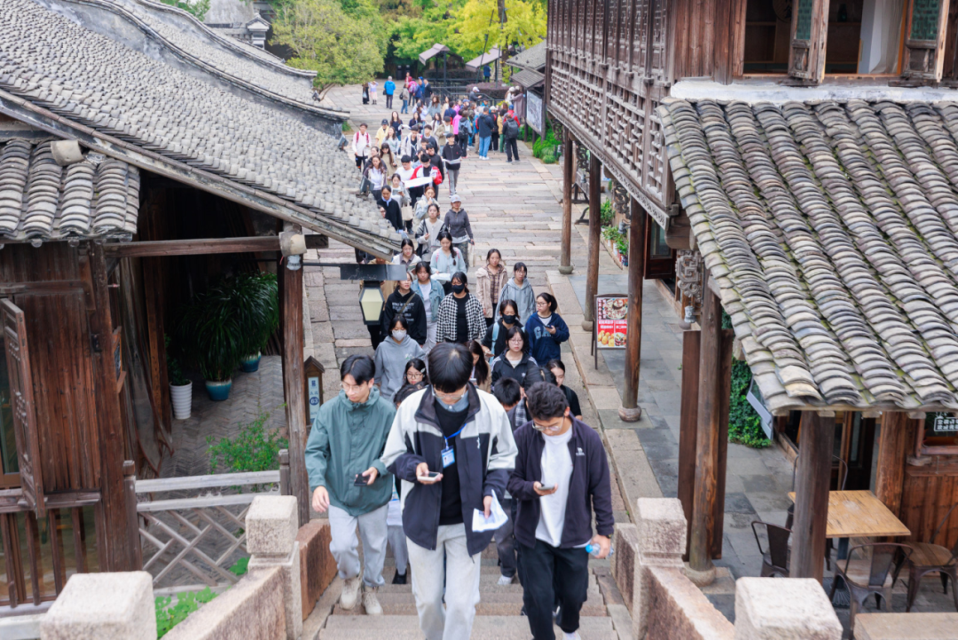 每一个站点,每一处拐角,都有杭电“小梧桐”挺拔的身影和亲和的微笑。支撑他们从容服务的,是刻在细节里的专业底气。而那抹挂在嘴角的微笑,更成了他们独有的服务印记。这份“专业”与“亲和”的碰撞,让“小梧桐”的身影成为了乌镇秋日里最动人的青春景象。