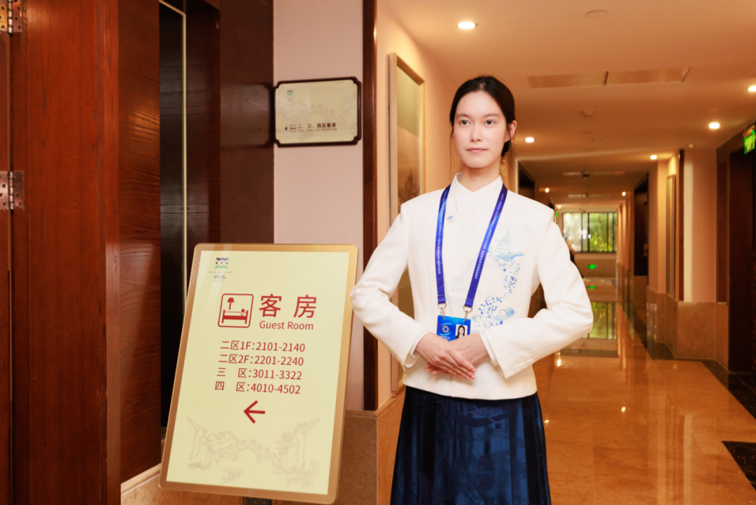 “Jalloh每天都会主动用中文和我打招呼,那天送他回去的路上,我们聊了好多。他说喜欢乌镇的水巷石桥,还兴奋地说起对北京之旅的期待。” 回忆起与外宾Jalloh的互动,来自2023级会计学院的“小梧桐”陈木子眼里满是笑意。她值守的站点是许多外宾出入的必经之路,日复一日的微笑问候,让这里成了传递温暖的窗口。